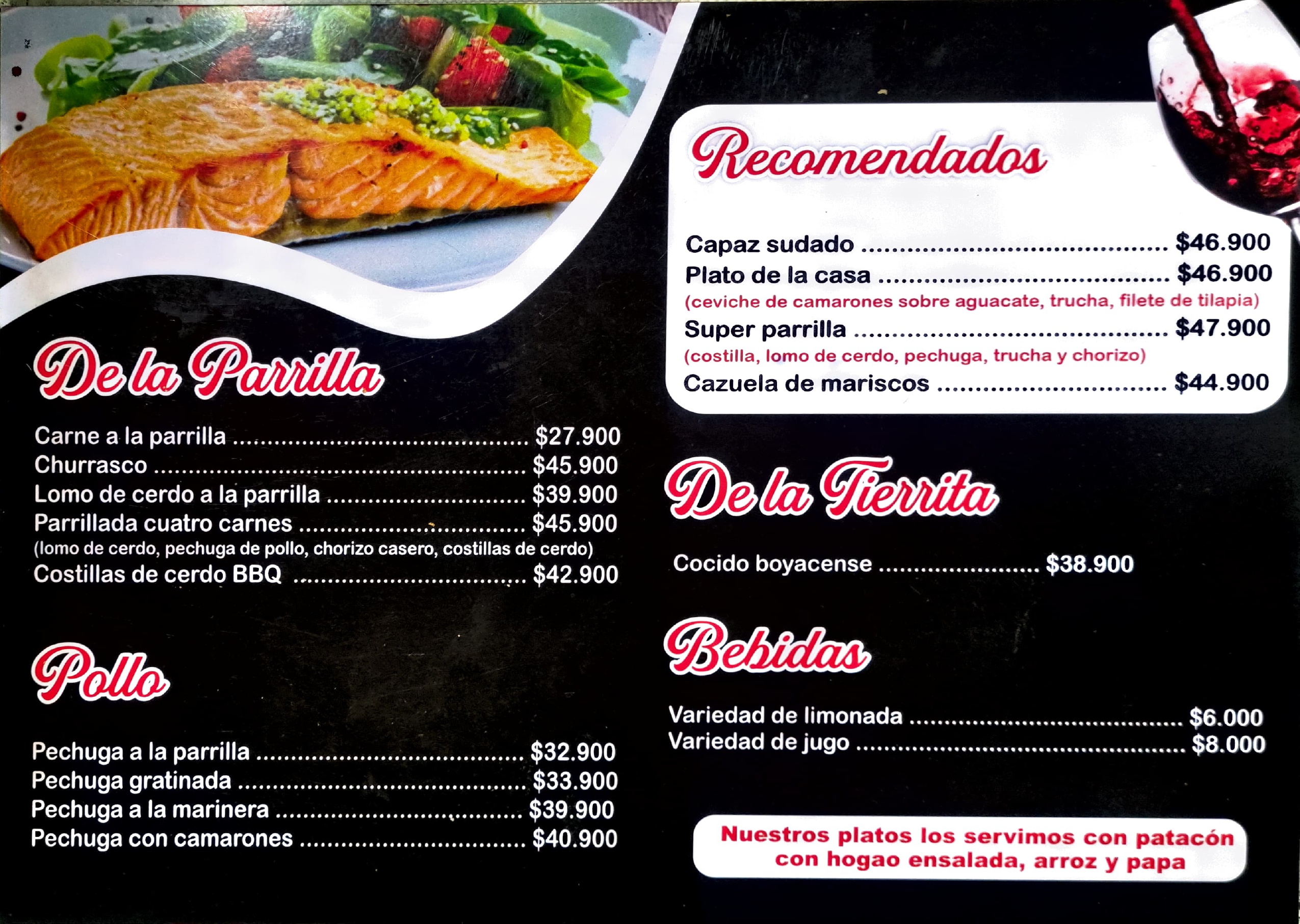 Publicado en CA PS11 Junio 2025Trustindex verifica que la fuente original de la reseña sea Google. Excelente comida 💯Publicado en Nilda Maria Coy Roberto7 Marzo 2025Trustindex verifica que la fuente original de la reseña sea Google. Excelente lugar, comida deliciosa y muy buena atención.Publicado en Marco Gongora4 Febrero 2025Trustindex verifica que la fuente original de la reseña sea Google. Rico y económicoPublicado en Natalia Rojas1 Enero 2025Trustindex verifica que la fuente original de la reseña sea Google. Gran lugar, personas amables y calidad humana sobre todo.Publicado en Liliana Tamayo29 Diciembre 2024Trustindex verifica que la fuente original de la reseña sea Google. El servicio es muy bueno los platos son deliciosos les recomiendo este lugar para los que quieren almorzarPublicado en sandra juramur13 Octubre 2024Trustindex verifica que la fuente original de la reseña sea Google. Cuando venimos a Paipa no puede faltar almorzar aquí, es hermoso el lugar, los meseros amables,el dueño super servicial ,y la comida soñada lo super reconiendo de lo mejor que hay en restaurantes.Publicado en Angela11 Octubre 2024Trustindex verifica que la fuente original de la reseña sea Google. El personal es de lujo, da gusto como el dueño del lugar atiende a sus clientes y trabajadores, resalto que el personal tiene todas las generaciones, apoyando así el empleo de la region. La comida espectacular, muy sabrosa y con generosos acompañamientos, todo muy fresco y natural. Es un lugar acogedor, aireado y muy limpio. Me encantaría recomendarlo también para eventos y reuniones familiares.
